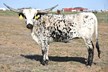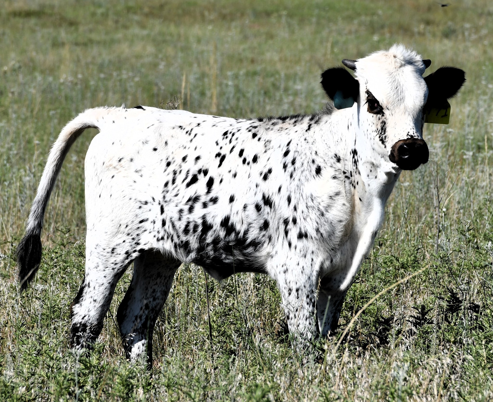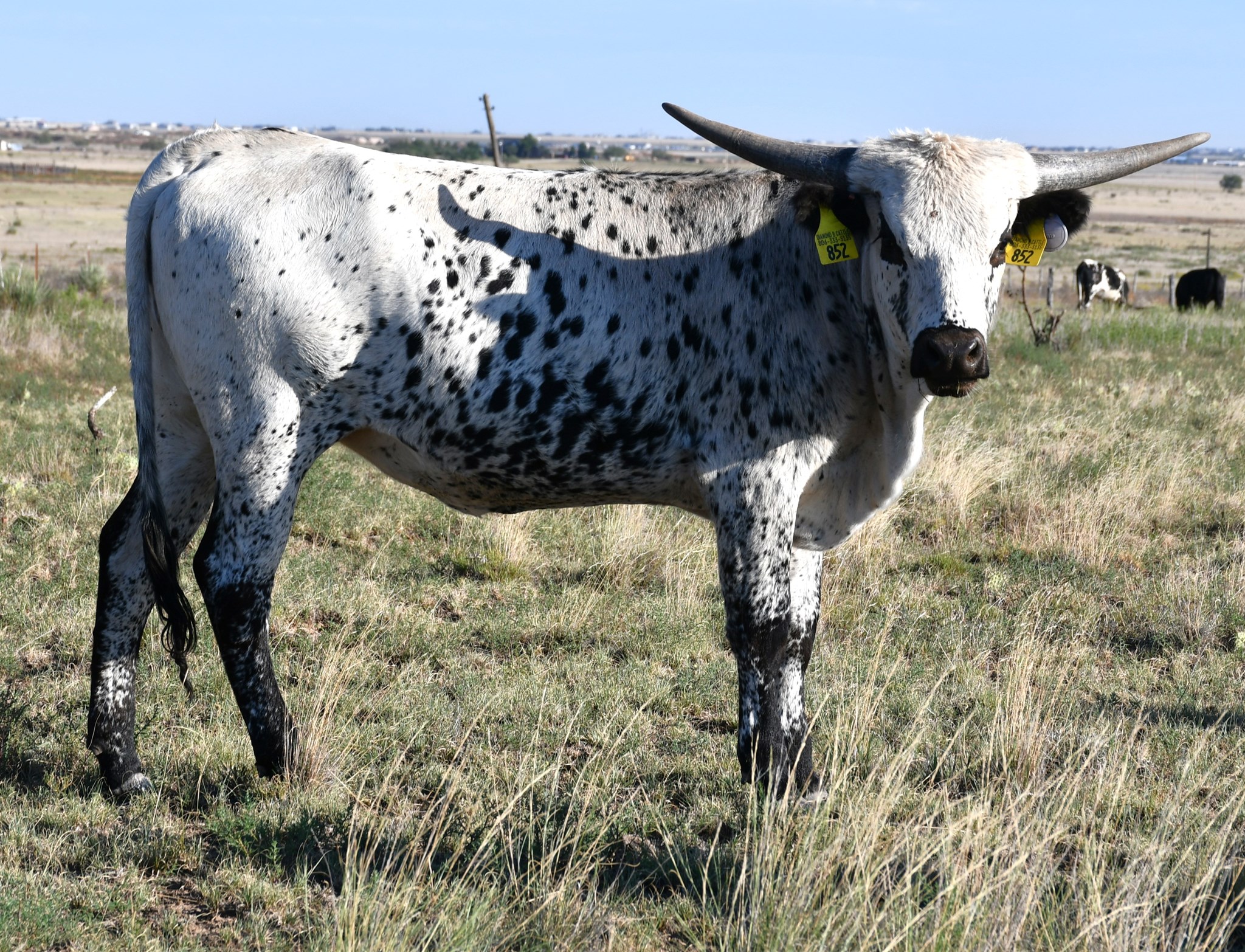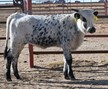 Beautiful black and white daughter of Dickinson's Homozygous black bull Showman and a twisty horned Clear Point daughter. Her dam, Point Fast, has an awesome twisty horn set. This heifer is the result of over 50 years of planned matings, making the hard part already done.