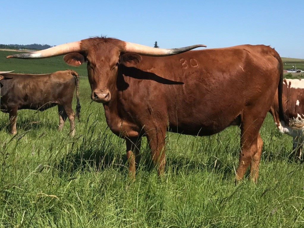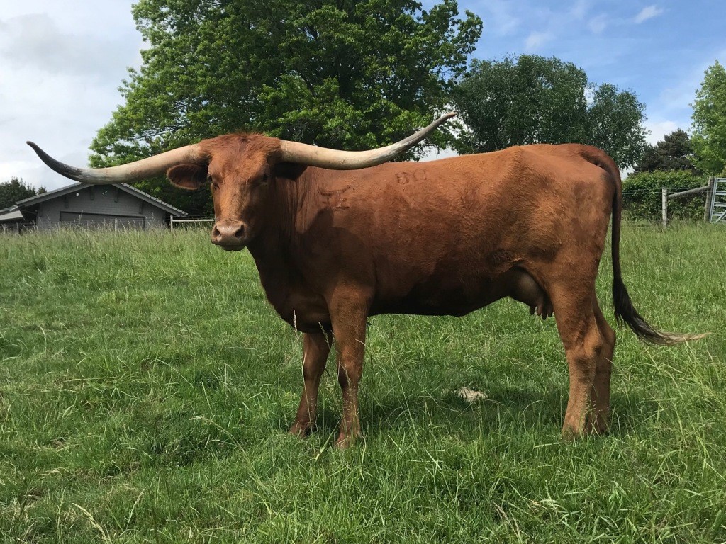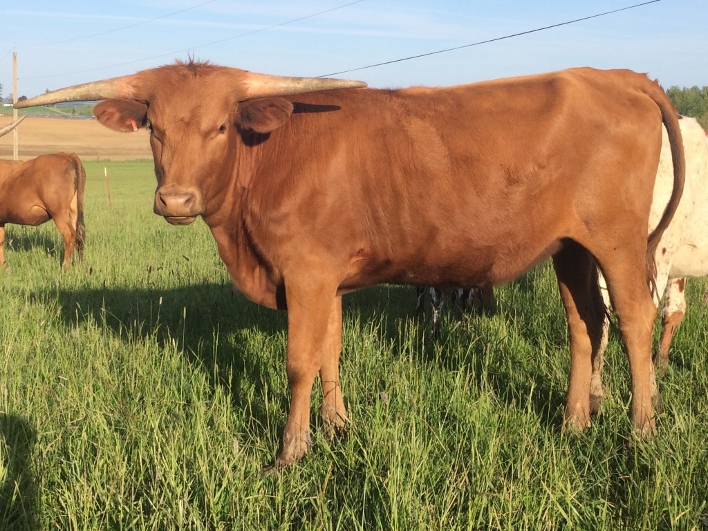 Tremendous Bolero daughter out of a Sage Smoke (by Hunts Command Respect) daughter. Huge horns, but asymmetrical.